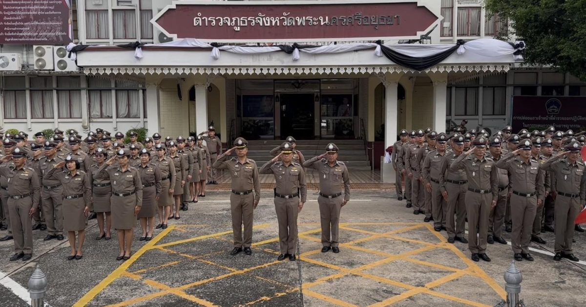 ตำรวจภูธรจังหวัดพระนครศรีอยุธยา ร่วมพิธีเคารพธงชาติและยืนสงบนิ่ง น้อมรำลึกในพระมหากรุณาธิคุณ สมเด็จพระนางเจ้าสิริกิติ์ พระบรมราชินีนาถ พระบรมราชชนนีพันปีหลวง”