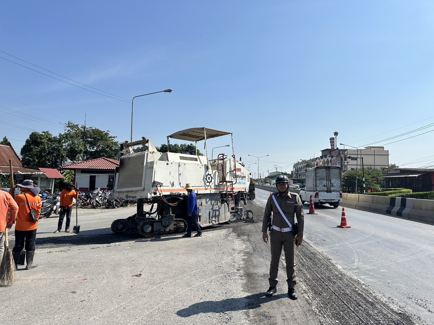 สภ.พระขาว อำนวยความสะดวกการจราจร ซ่อมแซมปรับปรุงถนน