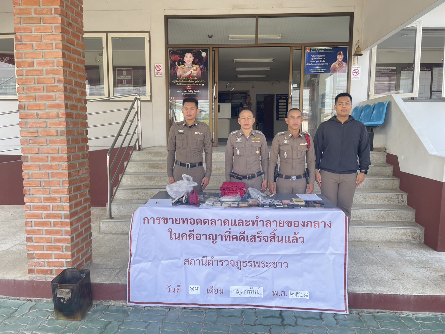 สภ.พระขาว ทำลายของกลาง ที่เสื่อมสภาพและไม่อาจจะประมูลเป็นราคาได้ ตามระเบียบ