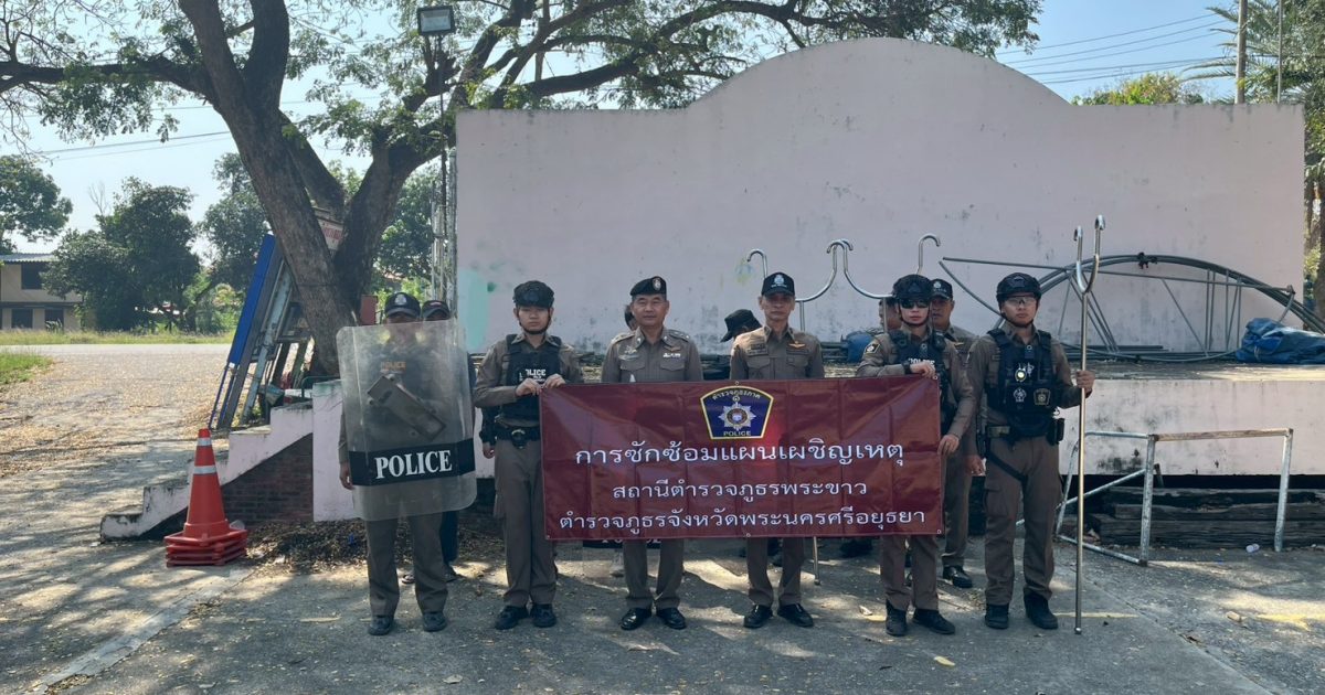 สภ.พระขาว ซักซ้อมแผนเผชิญเหตุคนร้ายจับตัวประกัน 04/03/2026 โดย admin / ข่าวประชาสัมพันธ์,ข่าวกิจกรรม,ข่าวประชาสัมพันธ์ สภ.พระขาว ซักซ้อมแผนเผชิญเหตุคนร้ายจับตัวประกัน วันที่ 4 มีนาคม 2569 เวลา 10.00 น. ภายใต้การอำนวยการของ พ.ต.อ.กฤษฎาพร จงอักษร ผกก.สภ.พระขาว นำโดย พ.ต.ท.เศกสันต์ หาญคำแพง รอง ผกก.ป.สภ.พระขาว พ.ต.ท.สราวุธ โกษีโรจน์ สวป.สภ.พระขาว พร้อมกำลังสายตรวจรถยนต์ สายตรวจจราจร และชุดสืบสวน ดำเนินการซักซ้อมแผนเผชิญเหตุคนร้ายจับตัวประกัน ณ บ้านพักไม่มีเลขที่ ม.6 ต.พระขาว อ.บางบาลฯ เหตุการณ์ปกติ #สถานีตำรวจภูธรพระขาว เหตุด่วนเหตุร้ายโทรแจ้ง 191 สภ.พระขาว โทร 035-308519 #ตำรวจภูธรจังหวัดพระนครศรีอยุธยา #ตํารวจภูธรภาค1