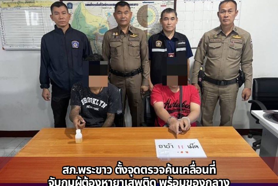 สภ.พระขาว ตั้งจุดตรวจค้นเคลื่อนที่ป้องกันอาชญากรรม จับกุมผู้ต้องหายาเสพติด พร้อมของกลาง
