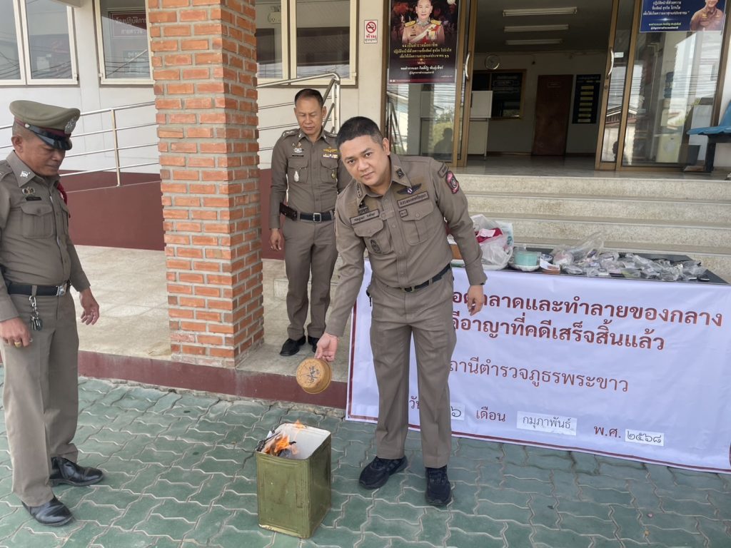 สภ.พระขาว ทำลายของกลาง ที่เสื่อมสภาพและไม่อาจจะประมูลเป็นราคาได้ ตามระเบียบ