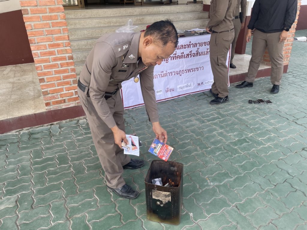 สภ.พระขาว ทำลายของกลาง ที่เสื่อมสภาพและไม่อาจจะประมูลเป็นราคาได้ ตามระเบียบ