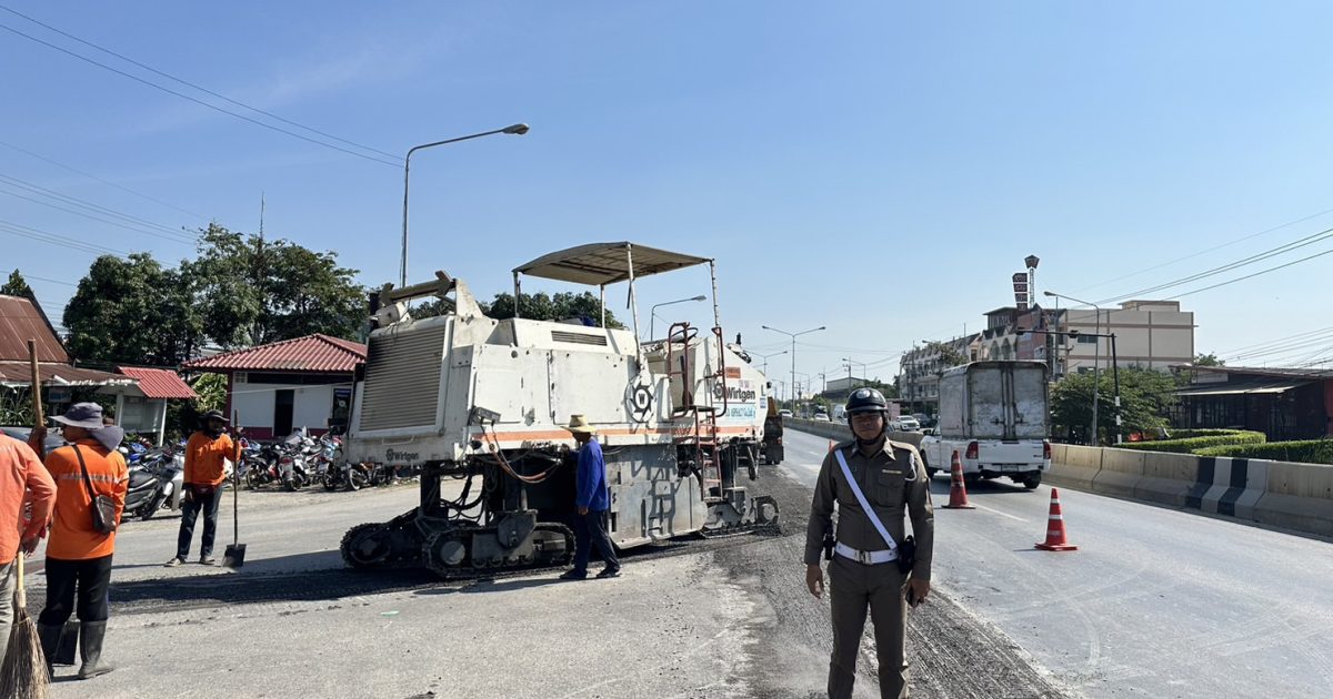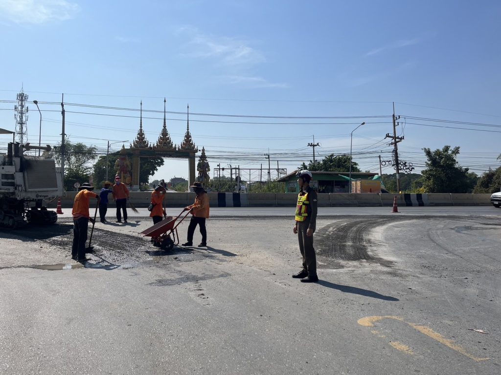 สภ.พระขาว อำนวยความสะดวกการจราจร ซ่อมแซมปรับปรุงถนน