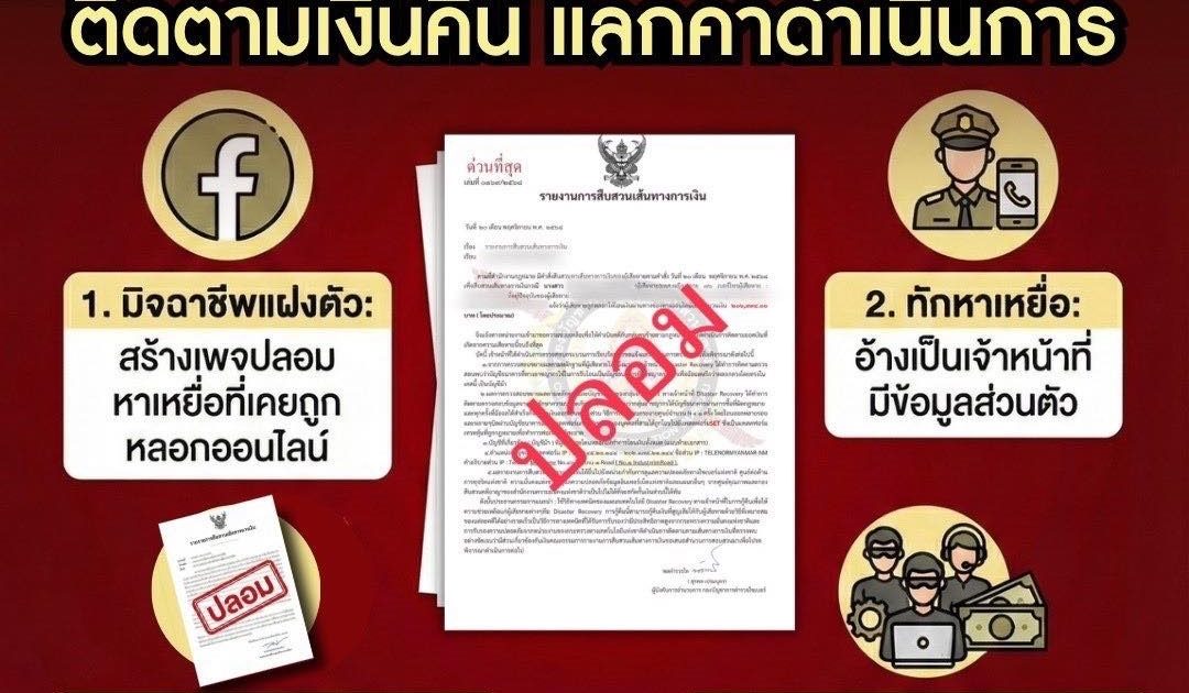 อย่าหลงกล อุบายมิจจี้ หลอกลวงซ้ำเติมผู้เสียหาย แอบอ้างเป็นเจ้าหน้าที่ติดตามเงินคืนแลกค่าดำเนินการ 12/12/2025 โดย admin / ข่าวประชาสัมพันธ์,ข่าวประชาสัมพันธ์,ข่าวฝากประชาสัมพันธ์ อย่าหลงกล อุบายมิจจี้ สำนักงานตำรวจแห่งชาติเตือนภัย มิจฯหลอกลวงซ้ำเติมผู้เสียหาย แอบอ้างเป็นเจ้าหน้าที่ติดตามเงินคืนแลกค่าดำเนินการ แฝงตัวในโซเชียลมีเดียสร้างเพจ Facebook ปลอม มักใช้รูปเจ้าหน้าที่รัฐ โลโก้หน่วยงานรัฐ ทำให้ดูคล้ายเป็นเพจหน่วยงานราชการ หาเหยื่อที่โดนหลอกออนไลน์ ทักหาเหยื่อ อ้างเป็นเจ้าหน้าที่ มีข้อมูลส่วนตัว โชว์เอกสารราชการที่ทำปลอมขึ้นมา อ้างสืบสวนเส้นทางการเงิน แล้วพบว่าพฤติการณ์ฟอกเงิน เพื่อเร่งเร้าให้เหยื่อตกหลุมพราง  รับอาสาดำเนินการช่วยเหลือติดตามเงินคืนโดยใช้เทคนิคพิเศษแต่เหยื่อต้องจ่ายค่าดำเนินการ พฤติกรรมแบบนี้มิจฉาชีพแน่นอน #ไม่เชื่อไม่รีบไม่โอน #เตือนภัยออนไลน์ #ศูนย์ต่อต้านการฉ้อโกงออนไลน์ #สำนักงานตำรวจแห่งชาติ