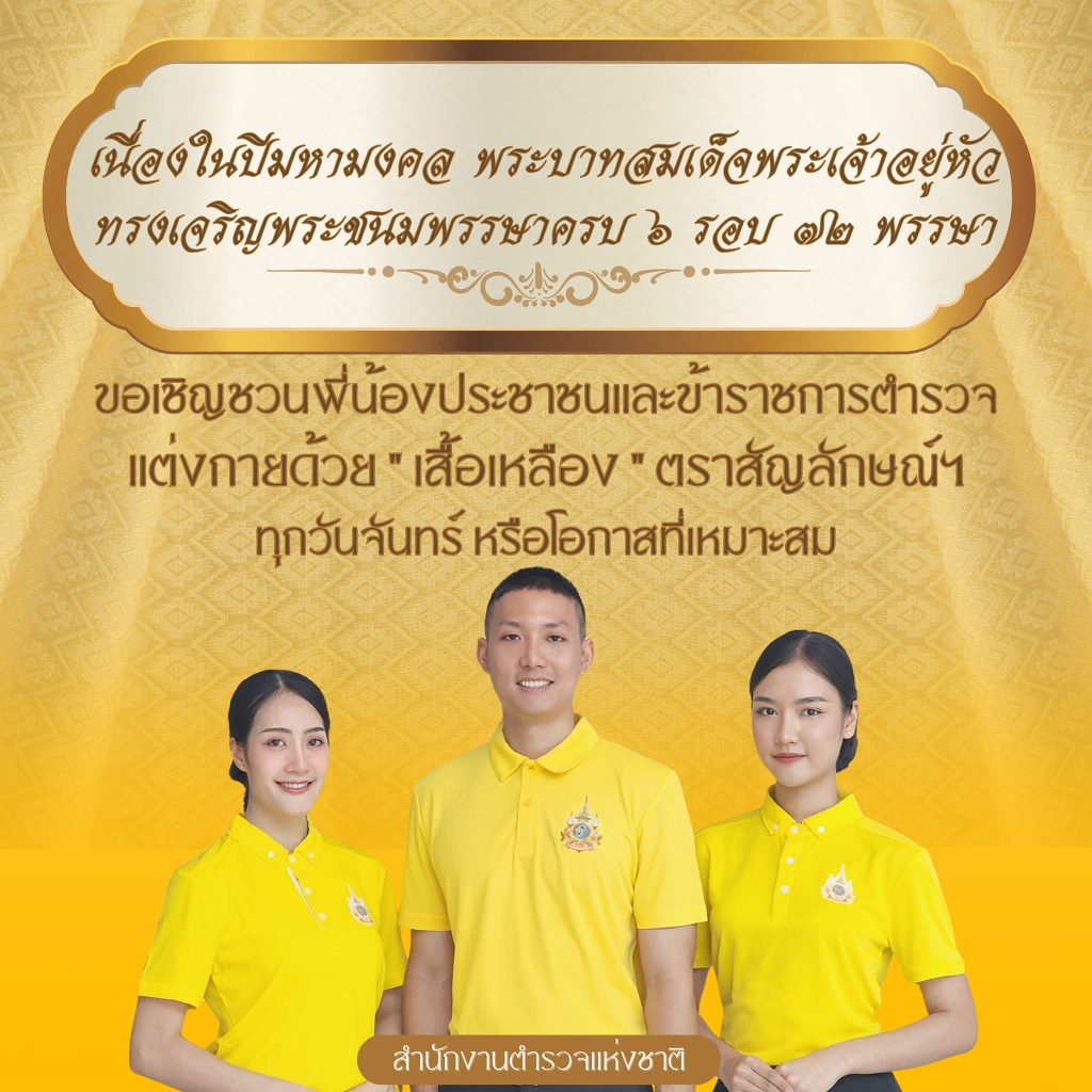 เชิญชวนพี่น้องประชาชนและข้าราชการตำรวจ แต่งกายด้วยเสื้อเหลือง ตราสัญลักษณ์ฯ