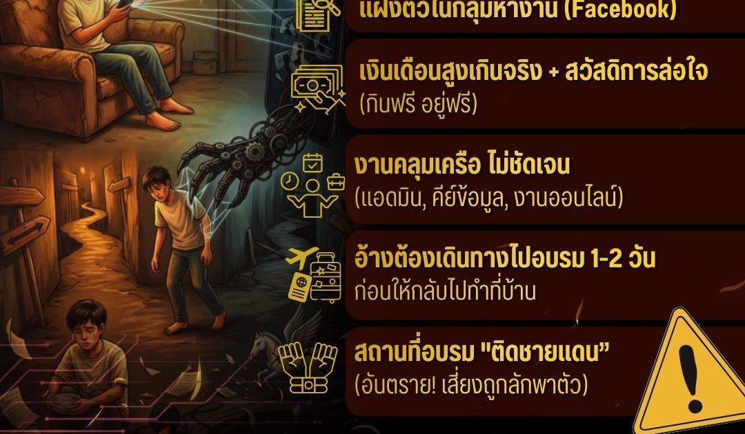 ⚠️ระวัง ช่วงนี้วัยรุ่นตกเป็นเหยื่อกันมาก 08/03/2026 โดย admin / ข่าวประชาสัมพันธ์,ข่าวฝากประชาสัมพันธ์ ระวัง ช่วงนี้วัยรุ่นตกเป็นเหยื่อกันมาก  “งานง่าย รายได้ดี ทำที่ไหนก็ได้” มาแบบนี้ .. เอ๊ะ สักนิด ทรงมิจฉาชีพชัวร์ หางานในโลกออนไลน์อาจตกเป็นเหยื่อ งานพิเศษเงินดี งานแอดมิน งานออนไลน์ ต้องไปอบรม พาไปชายแดน ท่านอาจกลายเป็นเหยื่อแก๊งสแกมเมอร์ ถูกหลอกไปเป็นแก๊งโจรโดยไม่ทันตั้งตัว ไม่เชื่อ ไม่หลงกล ด้วยความปรารถนาดีจากสำนักงานตำรวจแห่งชาติ #เตือนภัยออนไลน์ #สำนักงานตำรวจแห่งชาติ #Royalthaipolice