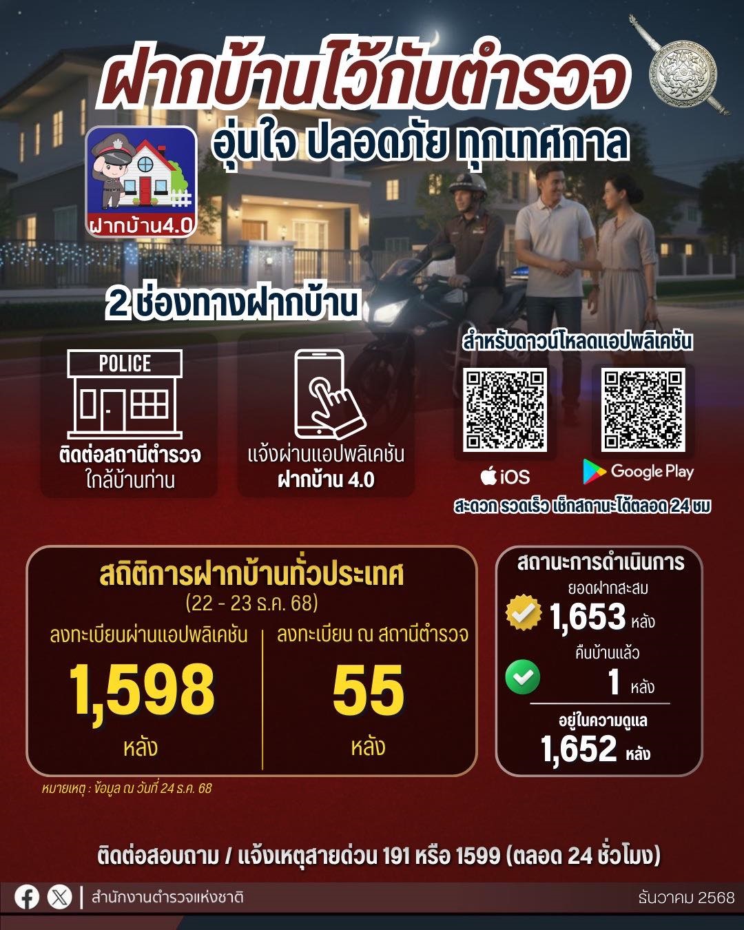 ฝากบ้านกับตำรวจก่อนเดินทาง ปีใหม่2569 เริ่ม 2 วัน ฝากบ้านแล้ว 1,653 หลัง เตรียมพร้อมก่อนเดินทาง ฝากบ