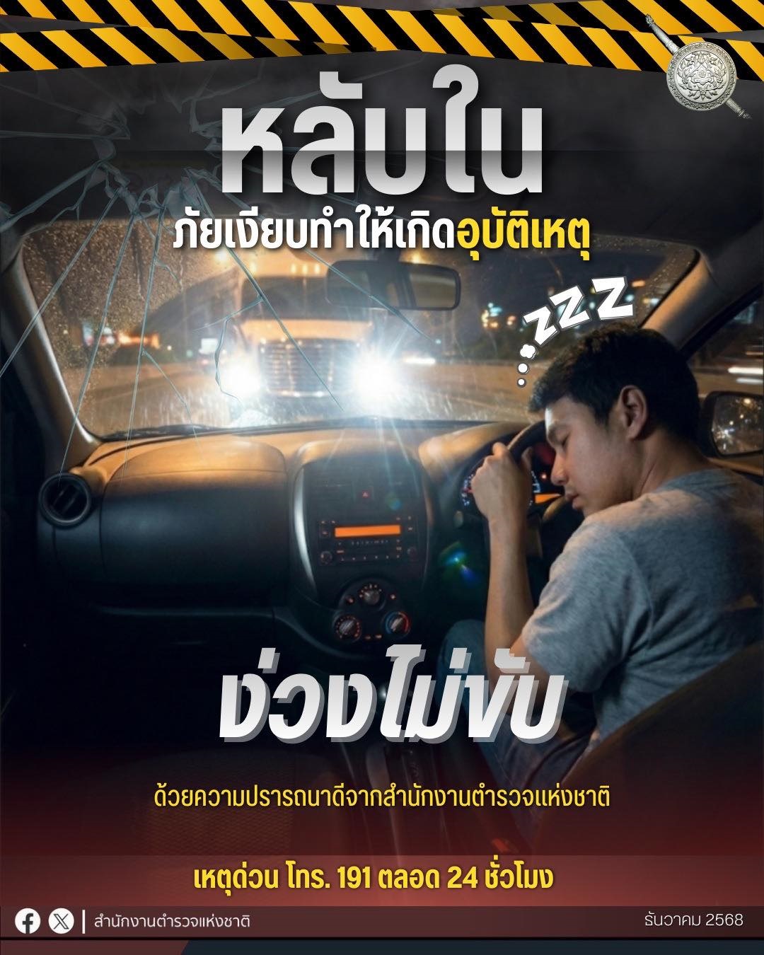 ”หลับใน“ ภัยเงียบทำให้เกิดอุบัติเหตุ ง่วงไม่ขับง่วงจอดพัก ปีใหม่2569 เดินทางกลับถึงบ้าน ท่องเที่ยวป