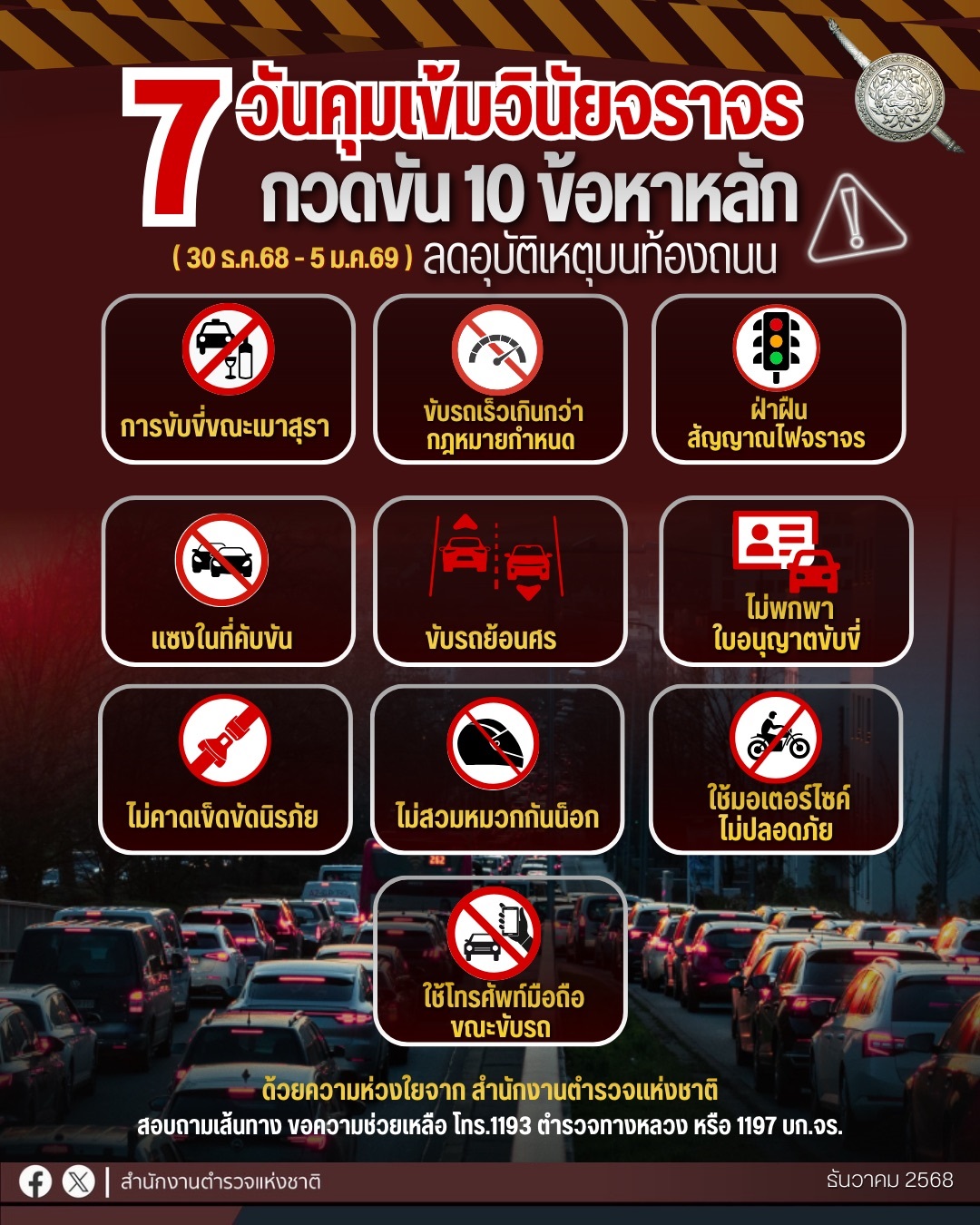 ทุกครั้งที่ออกเดินทาง อย่าลืมคาดเข็มขัดนิรภัย  ด้วยความห่วงใยจากสำนักงานตำรวจแห่งชาติ #ปีใหม่2569 #
