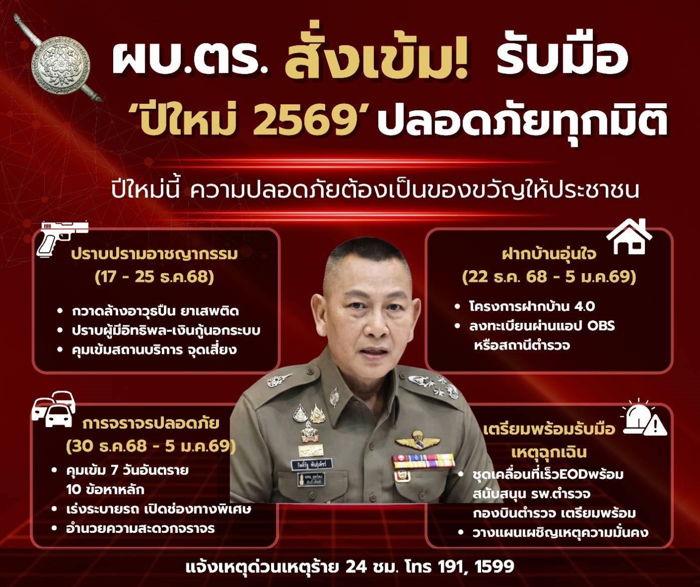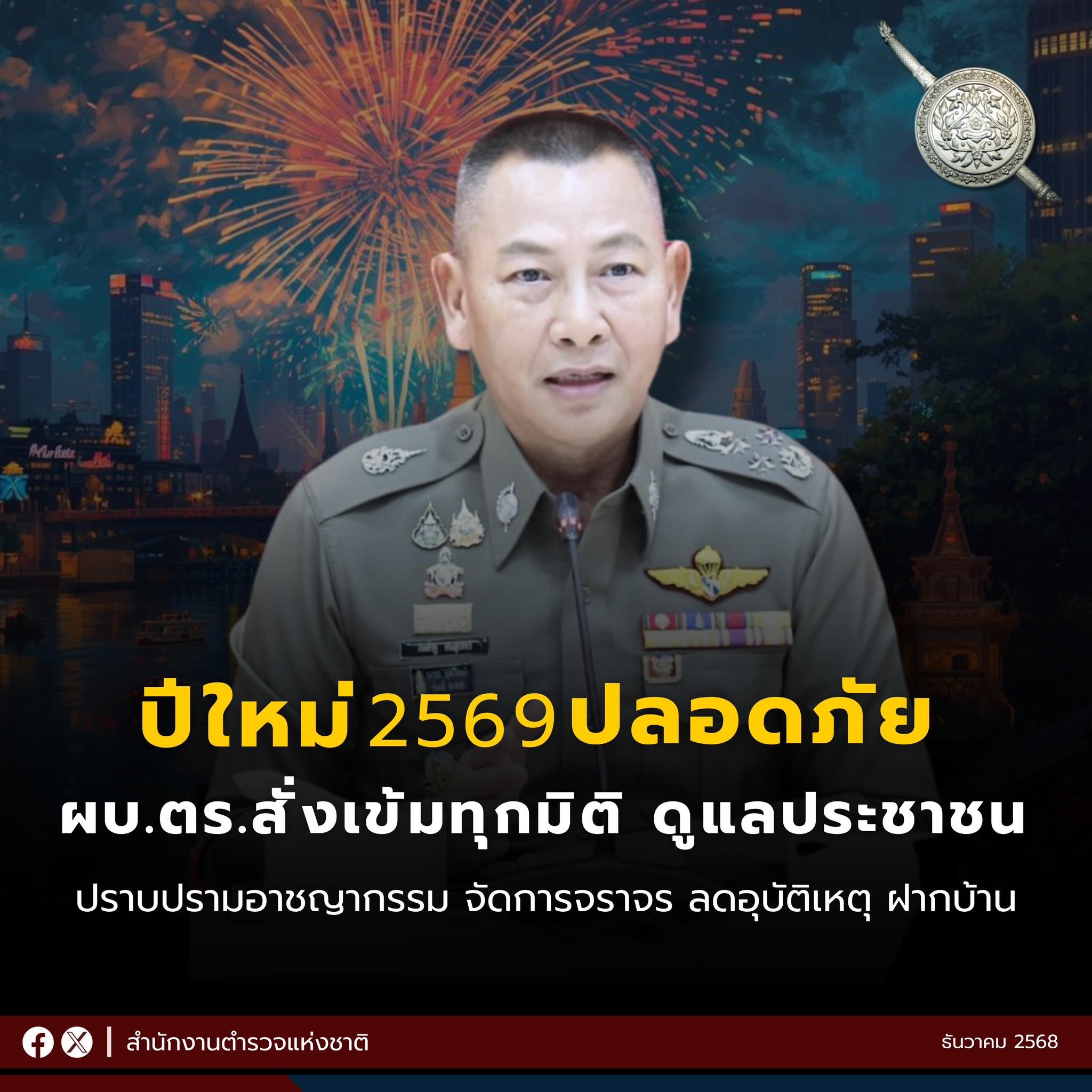 ผบ.ตร. สั่งเข้ม! รับมือ ‘ปีใหม่ 2569’ปลอดภัยทุกมิติ “ ปีใหม่นี้ ความปลอดภัยต้องเป็นของขว