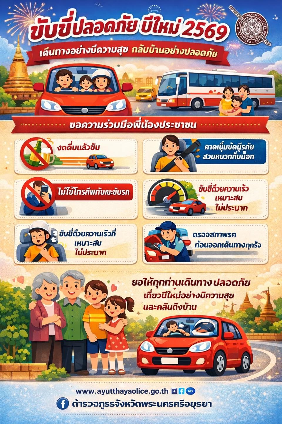ขับขี่ปลอดภัย ปีใหม่ 2569 เดินทางอย่างมีความสุข กลับบ้านอย่างปลอดภัย ช่วงเทศกาลปีใหม่เป็นช่วงเวลาแห่