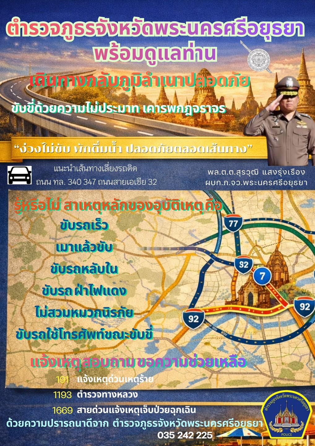 ภ.จว.พระนครศรีอยุธยา ประชาสัมพันธ์แจ้งเตือนการใช้รถใช้ถนน ตำรวจภูธรจังหวัดพระนครศรีอยุธยาขอประชาสัม