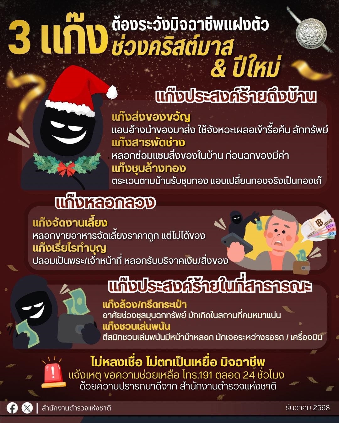 ระวัง 3 แก๊ง ภัยร้ายแฝงมาในช่วงเทศกาล ฉลองเทศกาล “คริสต์มาส & ปีใหม่ 2569” อย่างปลอดภัย แก๊งประส