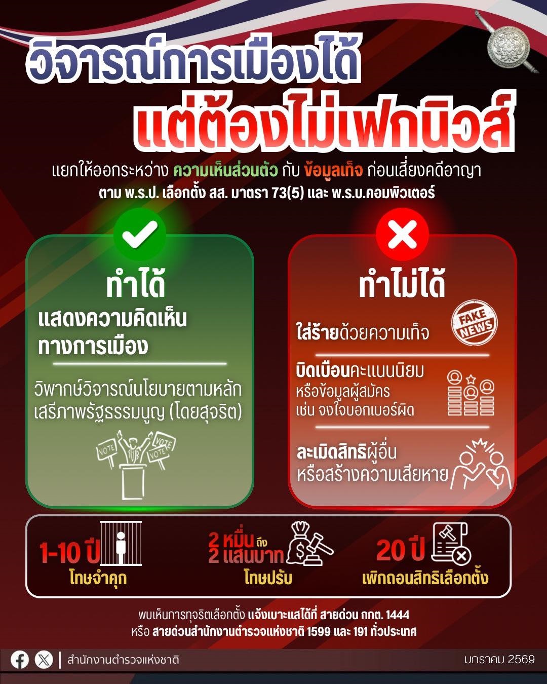 📍ต้องรู้ ..เลือกตั้ง 2569 วิจารณ์การเมืองได้ แต่ต้องไม่สร้างเฟกนิว ใส่ร้ายด้วยความเท็จ