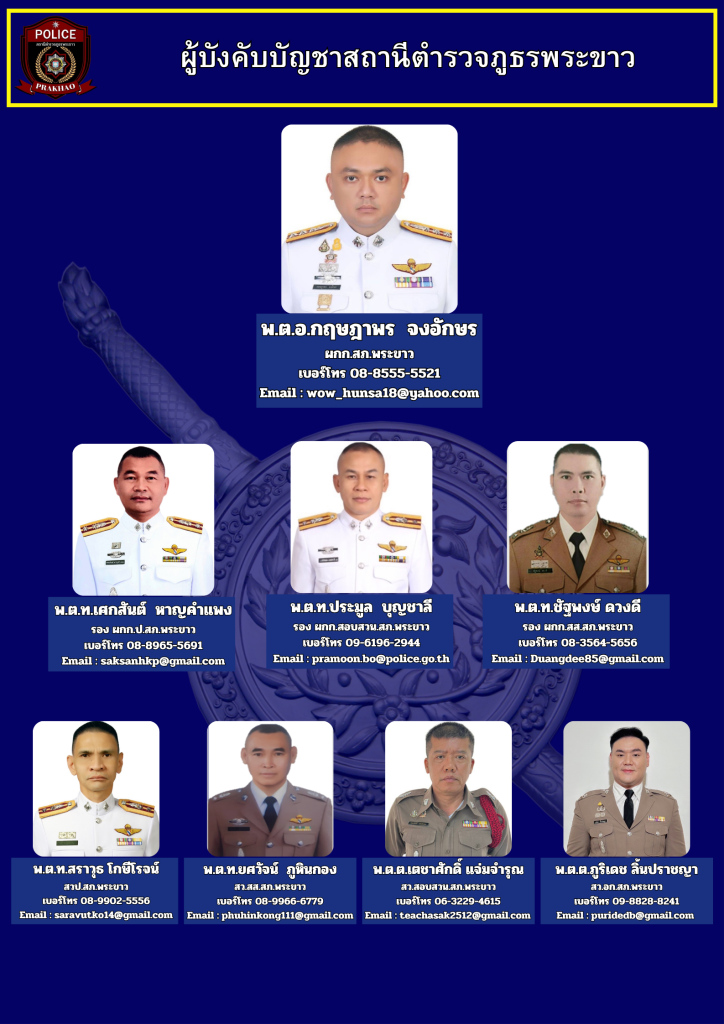 ข้อมูลผู้บังคับบัญชา สถานีตำรวจภูธรพระขาว