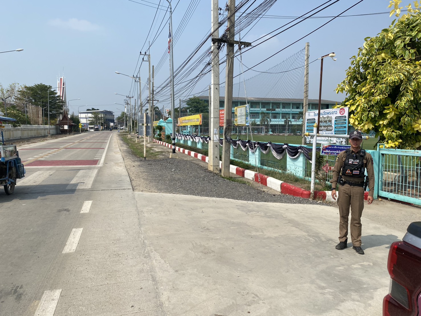 สภ.พระขาว อำนวยความสะดวกการจราจร และป้องกันเหตุ 600 บริเวณโรงเรียนวัดพระขาว