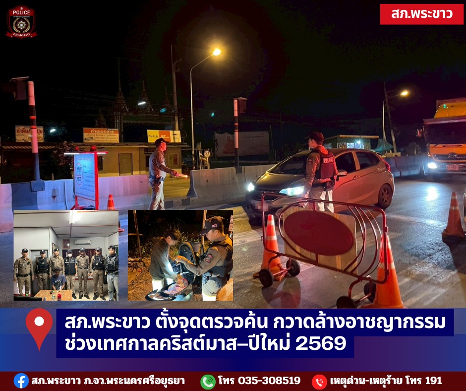 สภ.พระขาว ตั้งจุดตรวจค้นกวาดล้างอาชญากรรม ช่วงเทศกาลคริสต์มาส–ปีใหม่ 2569 วันที่ 17 ธันวาคม 2568 พ.