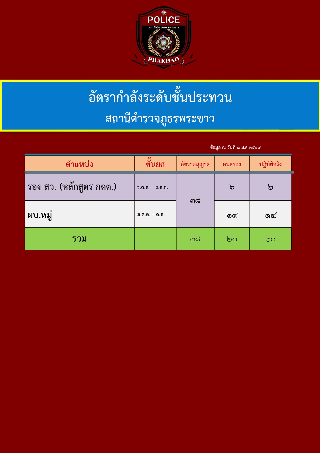 ข้อมูล ณ วันที่ 1 มกราคม 2567