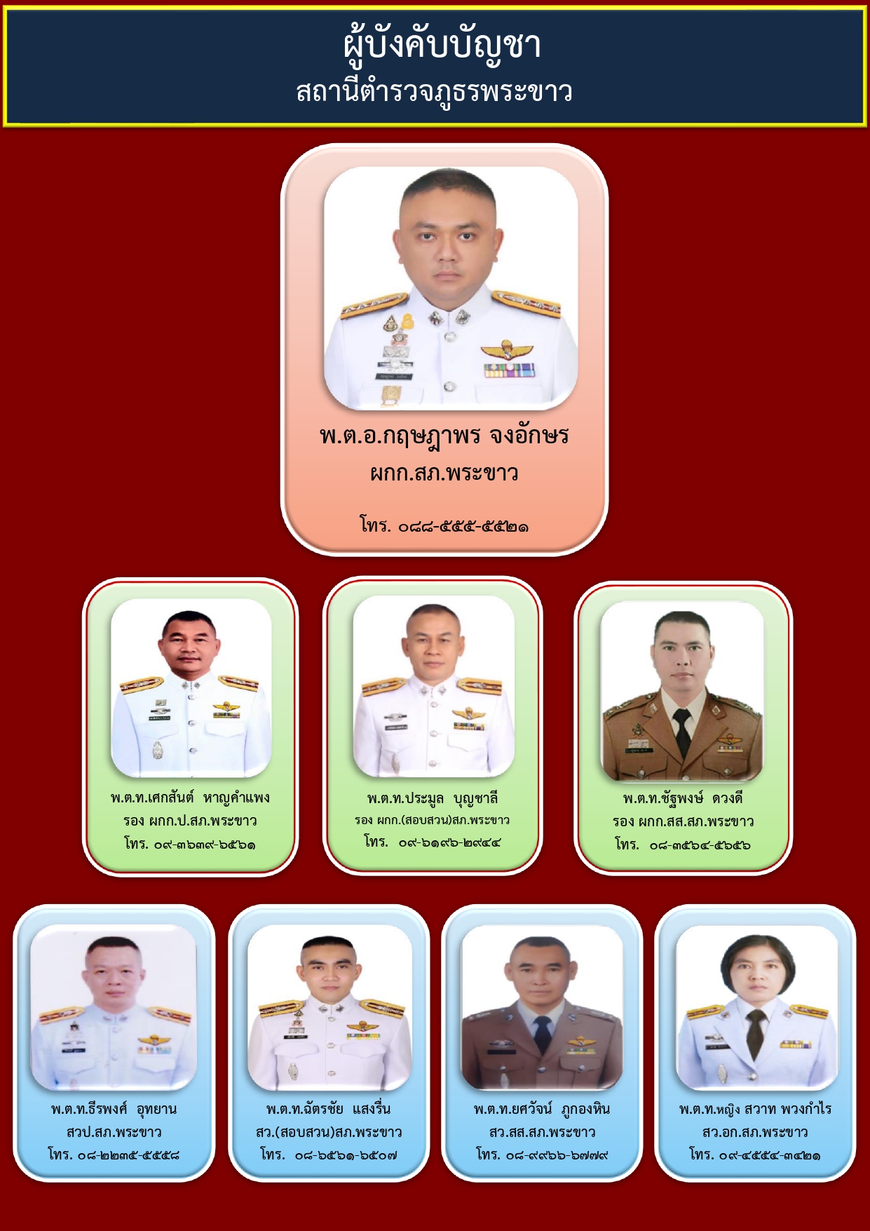 ข้อมูลผู้บังคับบัญชา สถานีตำรวจภูธรพระขาว